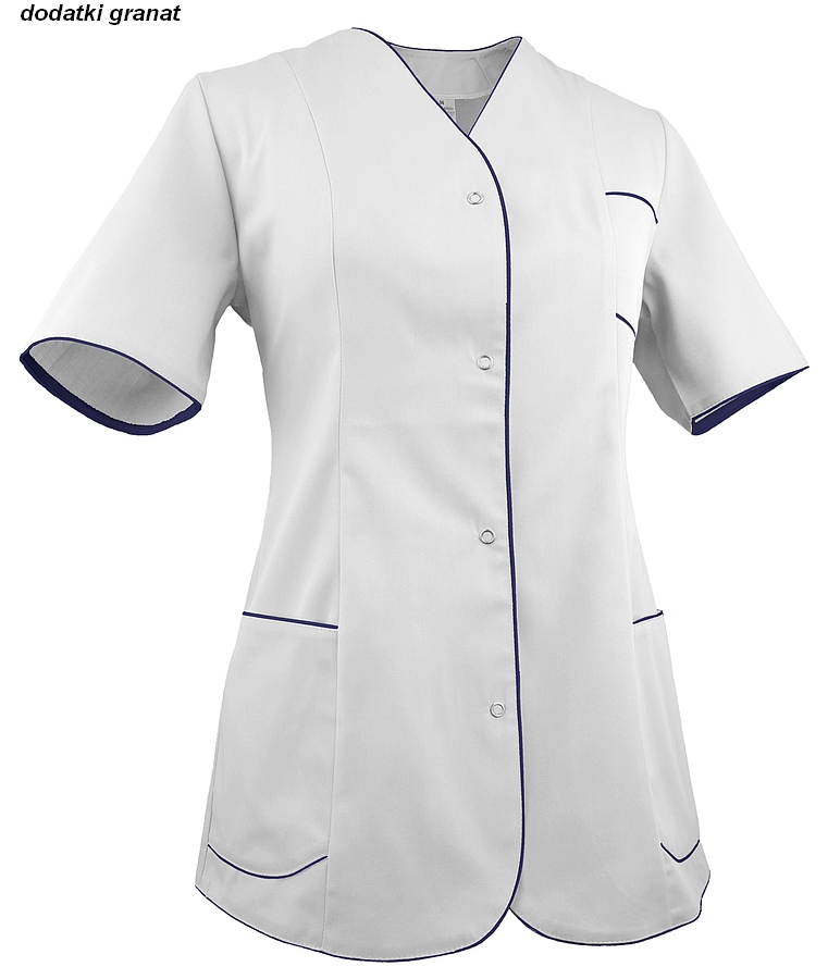 Żakiet damski medyczny, zapięcie na napy, krótki rękaw, trzy kieszenie. Pasowany, wygodny krój.
